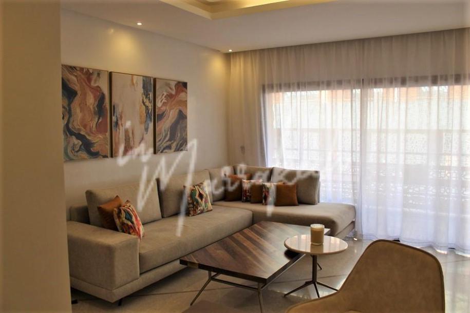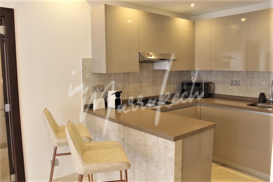 Votre agence immobilière InMarrakech    vous propose ce très beau  appartement de Standing situé au 4e étage au cœur de Gueliz dans la résidence du Carré eden comprenant une entrée avec placard, séjour avec sa belle cuisine américaine et une terrasse, deux chambres avec salle d’eau dont une aussi avec terrasse